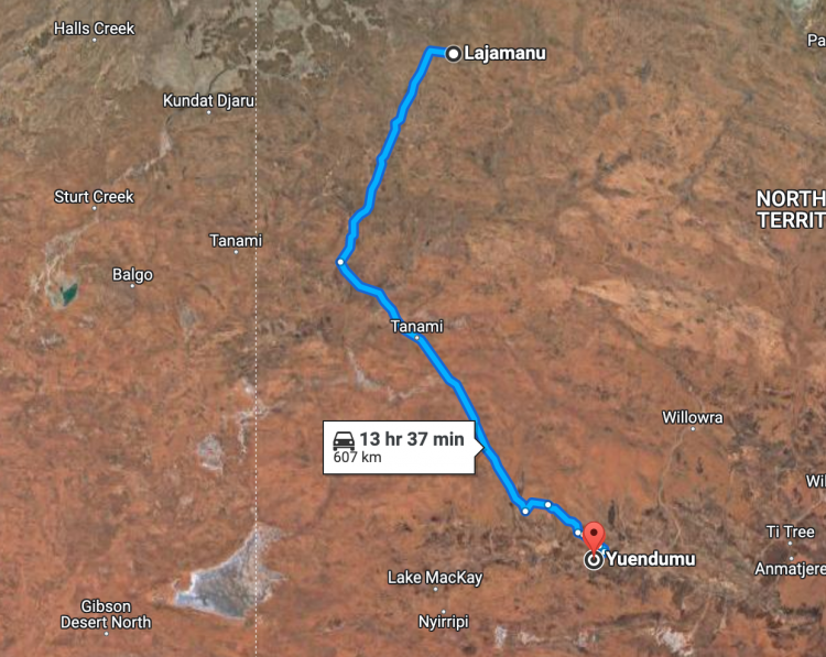 I felt that Coober Pedy to Alice was quite a drive, but a week later, my first morning back on Warlpiri country, I met two of my Yapa friends early in the morning, just coming into town having made this journey, along dirt roads full of washouts and corrugations. In a car. A saloon car. It took them 16 hours.
